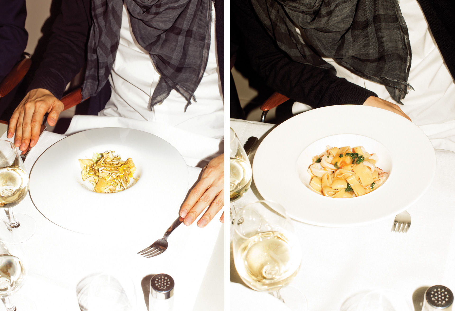 OSI think I’ll have a starter, the artichoke salad, and [he asks his assistant if they have enough time] the squid pasta.