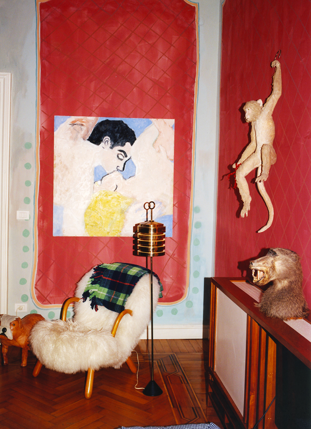 • He invites me into his kitchen for breakfast on the morning of Halloween. The house suits him. It is a tangle of rooms, with decorations on every surface. Some of the walls feature boiserie hand painted by him and a designer friend from Genoa in far from orthodox colours. Curtains are made in a fabric similar to a painter’s canvas and served as an outlet for his extrovert creativity in those endless days last spring when everything ground to a halt. In the anteroom, an incredible men’s coat in shaggy English fabric, is hanging quite naturally next to a large stiff waterproof in shiny leather, adorned with splashes of paint in a floral motif. The atmosphere is classic and sophisticated in its own way. A bundle of intriguing contradictions, just like my host.
