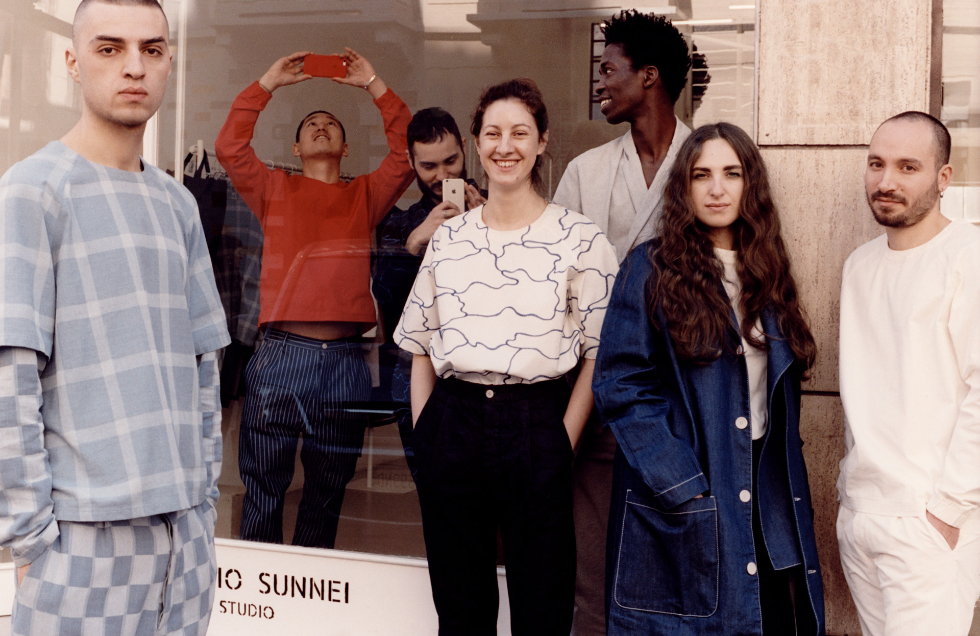 Loris Messina and Simone Rizzo are the creators behind Italian menswear brand SUNNEI. But that’s not all, they are also friends of Alla Carta, two huge fans of printed media and wonderful people. And that is how I find myself a guest in their space in the Piola area of Milan, here to have breakfast and get to know them a little better. Loris and Simone are both very young, under thirty, but they are both very sure of what they want and how they are going to get it. SUNNEI immediately carved out its own target and its own space in the market, without any gimmicks. And even the collection embodies a certain pragmatism, with clothes that really seem designed to be worn. While I’m with them I also meet a bunch of friends who popped in for a group photo, just to further highlight the values of this rather unconventional brand. Ingrid Meloni has been manager of The Art Markets (TAM) since 2009; Paolo Tocci is a DJ and producer who constantly explores new sounds and languages; Domenico Romeo, art director and visual artist, concentrates on the development and representation of signs; Shinich Morita, born in Japan and adopted by Milan, is a stylist at one of Milan’s coolest hairdressers – 8; Roberto Ortu is the creative director of online magazine Punkt; Rosita Giammarino is a photographer who only wears clothes she has designed herself. And then there’s Nino, everybody’s best friend, the perfect model and even salesman sometimes, one of the friendliest faces to be found in Milan.