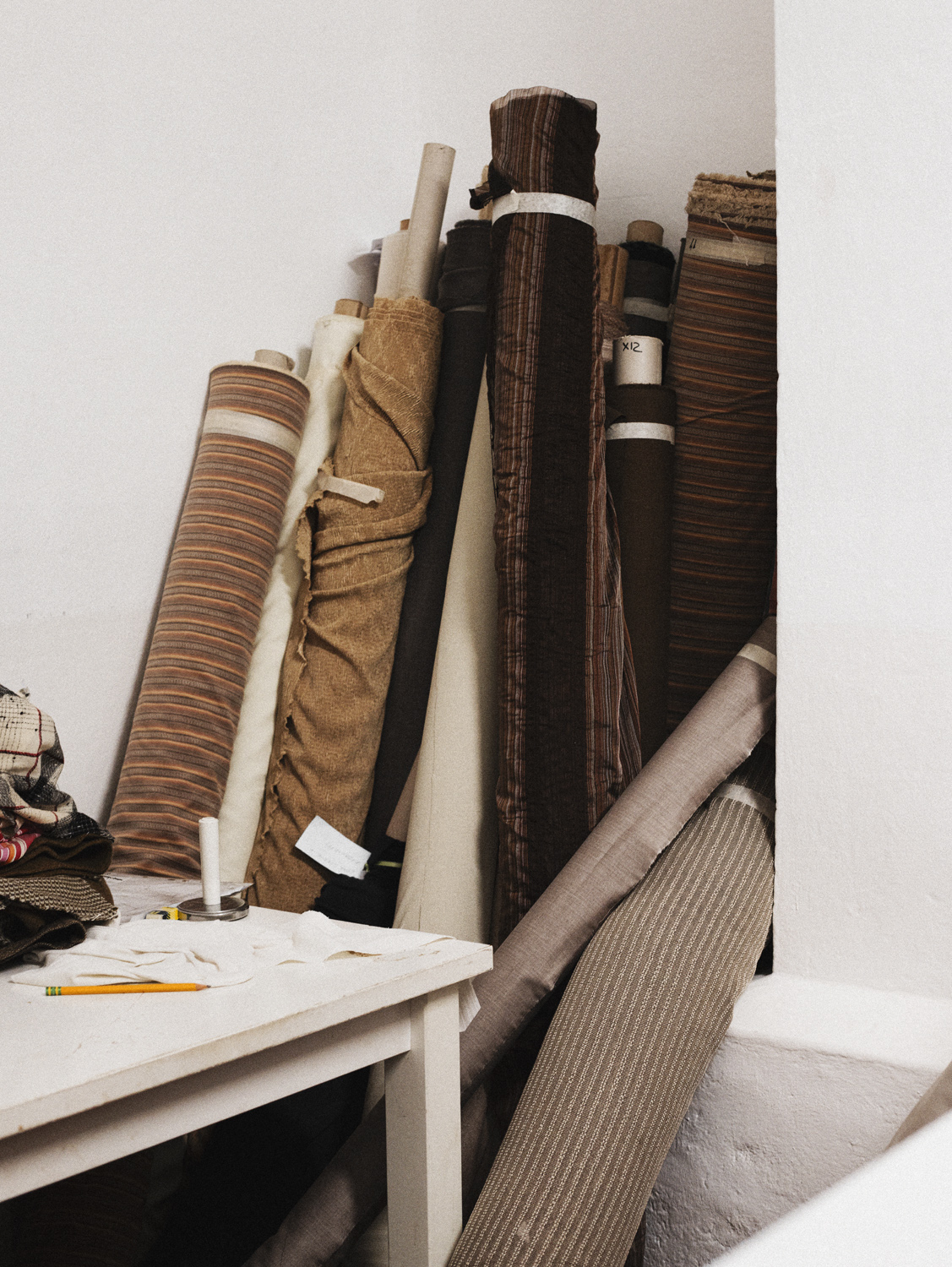 GTExactly. We make paper patterns and then we cut the patterns on the clothes. The fabrics are always leftovers of companies, so we have limited quantities and try to make pieces that perhaps have a fabric base which is the same for all, plus a series of details that instead change for every piece. We use everything, even curtains, table cloths, etc.