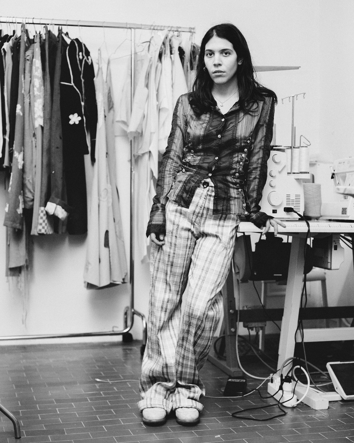 I met Giuditta Tanzi in the bar where she goes to eat practically every day near the studio where she is working on her project: Garbage Core. Giuditta has the name and looks of an Italian actress from the 1930s. Except for the fact that there is no posing in what she does, but everything appears coherent and natural, a direct extension of her taste and personality. Her story and that of her brand, even if she doesn’t like to call it that, are the natural evolution of an extremely contemporary taste, but with almost Renaissance echoes. It’s a project out of fashion, focused on the aesthetics of “rubbish”, research that Giuditta has been working on since her university days and which she has deepened by giving it her personal interpretation. Unique garments and limited series are in this way created which have always different details, because the fabrics are selected from dead stocks or obtained from garments bought in street markets and charity shops.