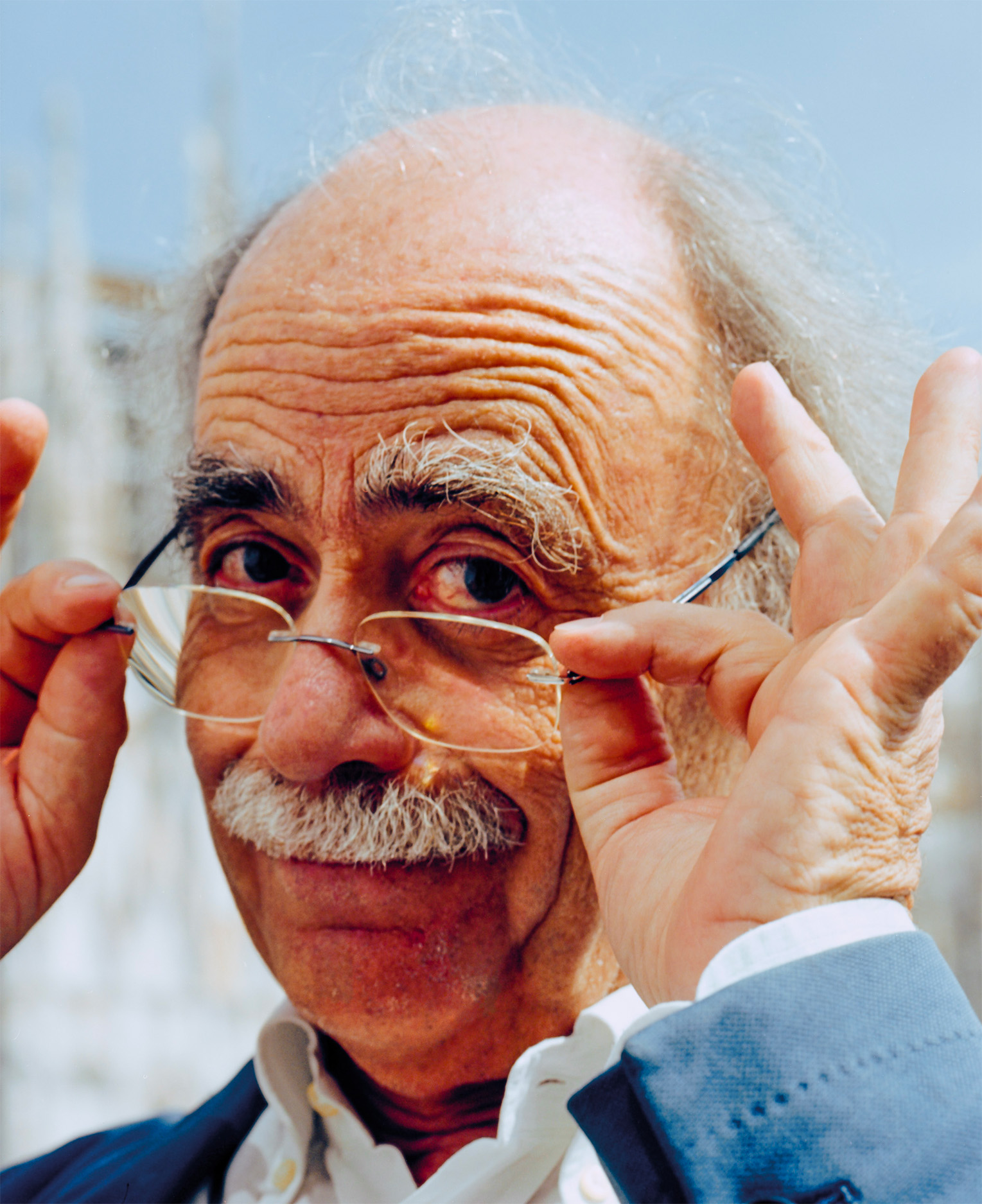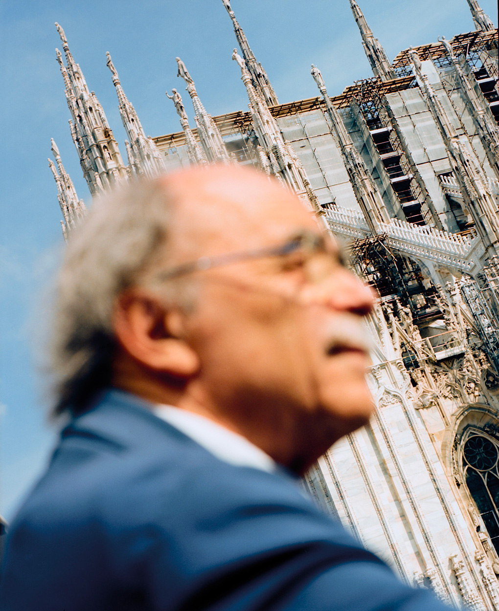 It is the first Monday in September and we are on the terrace at Giacomo Arengario's under the scorching sun to meet Maurizio Nichetti, the visionary director who in 1979 wrote and directed Ratataplan, the film that this issue of Alla Carta is inspired by and dedicated to. Today, Nichetti is the artistic director of the Centro Sperimentale, a lecturer at Iulm and the artistic director of the Visioni dal Mondo 2023 festival. We shoot a few portraits and then leave Carlo Antonelli, journalist, artistic director and film producer to take the reins of the conversation. It was less his qualifications and more his voracious intellectual curiosity and irreverence that inspired me to organise this encounter. During our shoot, Nichetti pulled out those masks so omnipresent in his films, which, when reviewed, seem almost crystallised in time: a cartoon that has never aged, just as Guido Manuli, co-director, drew in Volere Volare. Afterwards, as we’re waiting for the lift down to Piazza Duomo before going our separate ways, Nichetti refers to the interview with Antonelli as a Dadaist conversation. Here it is.